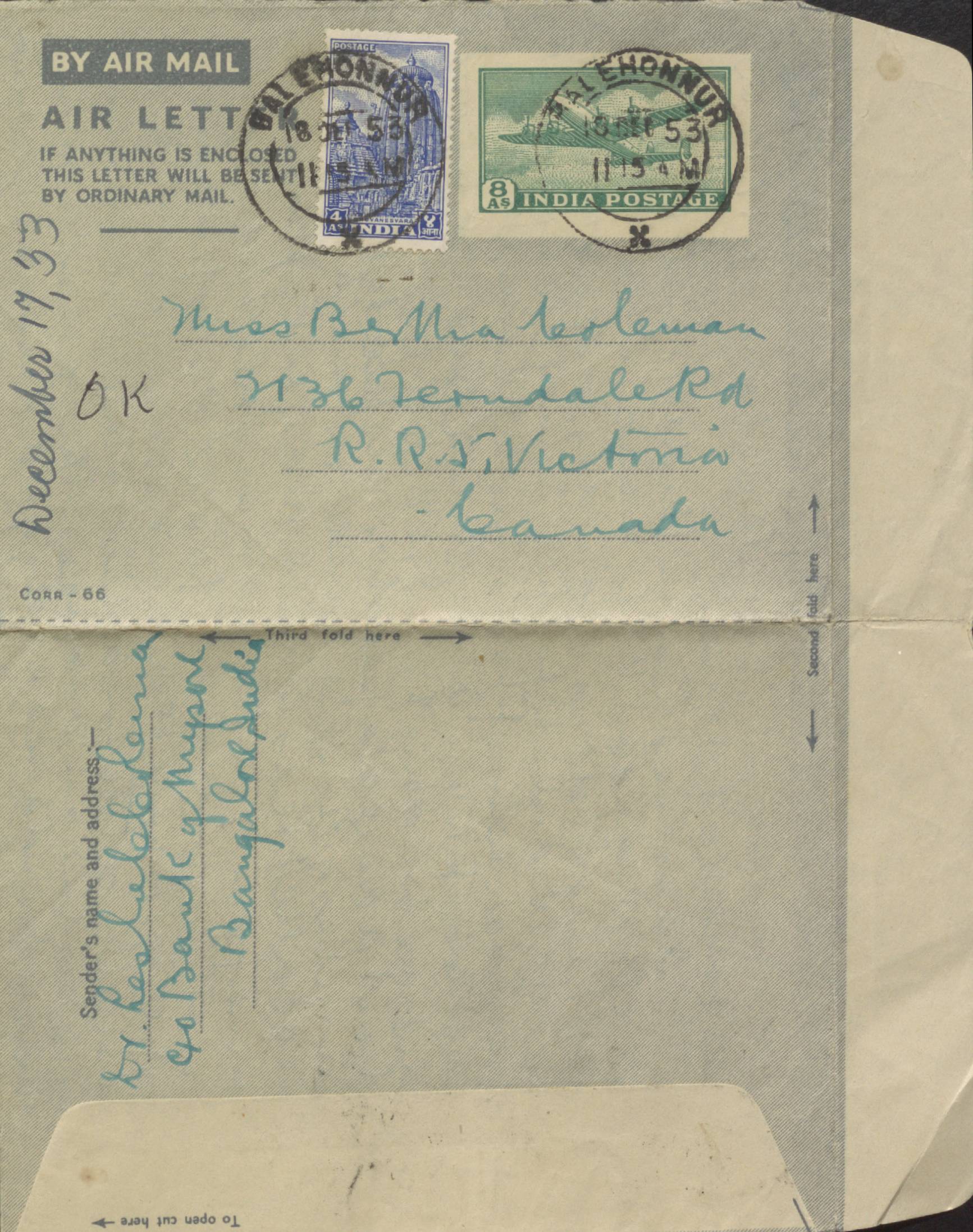 Detailing events during his stay at Coffee Research Station, Balehonnur in the Mysore state in India to evaluate agricultural practices.
