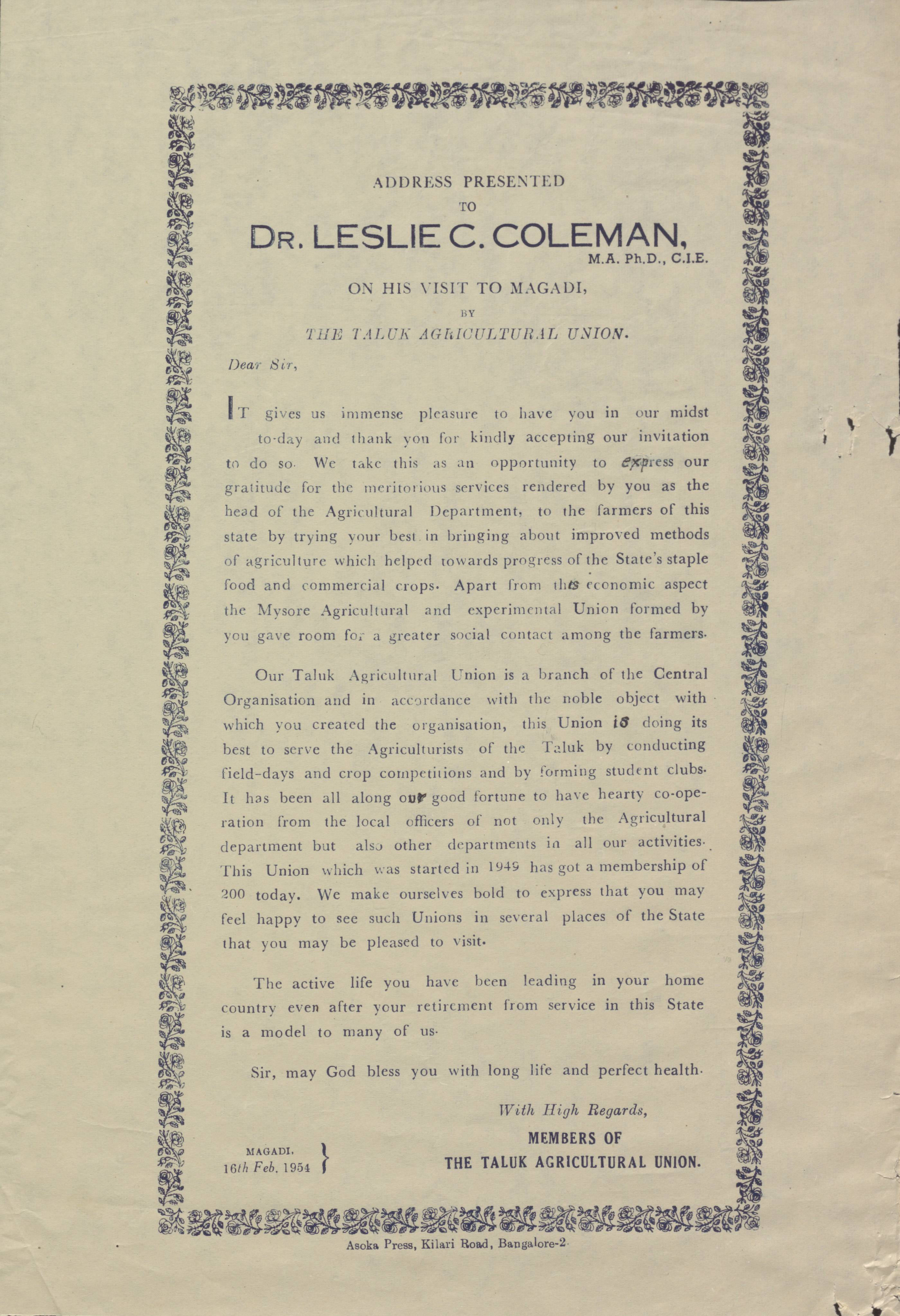 Taluk Agricultural Union, Magadi, 16 February 1954