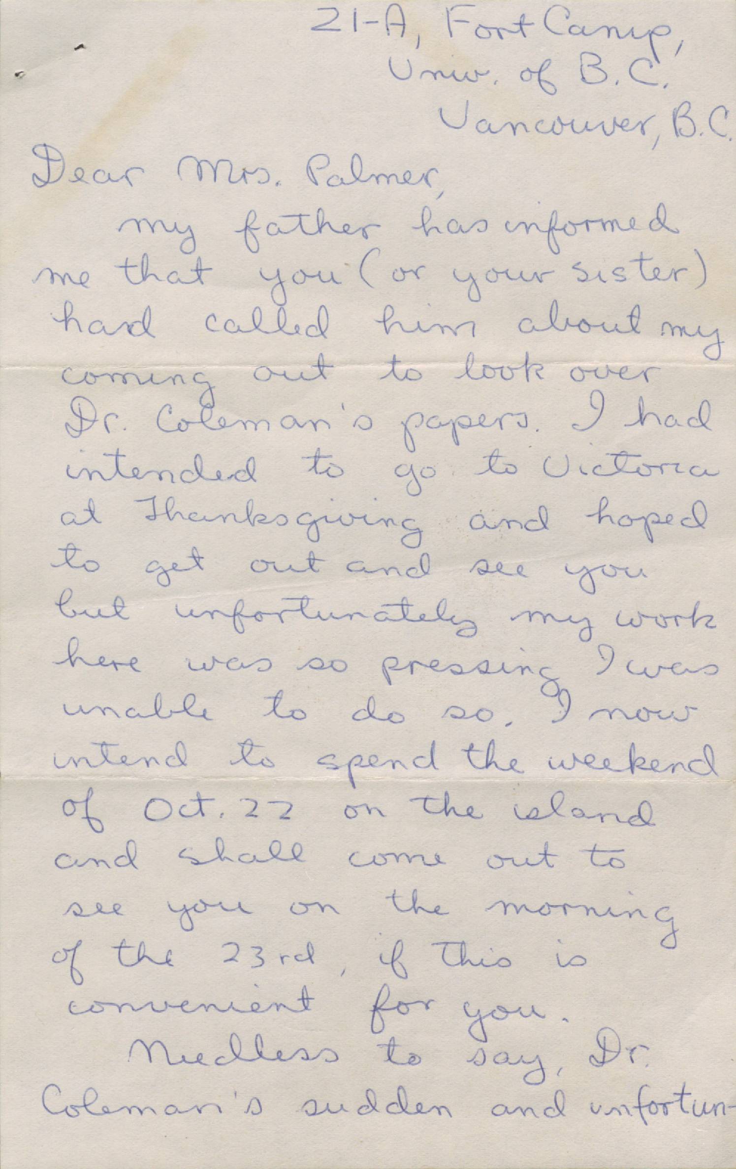 From Coleman's student who expresses his wish to carry on Coleman's legacy by following his ideas and philosophies.