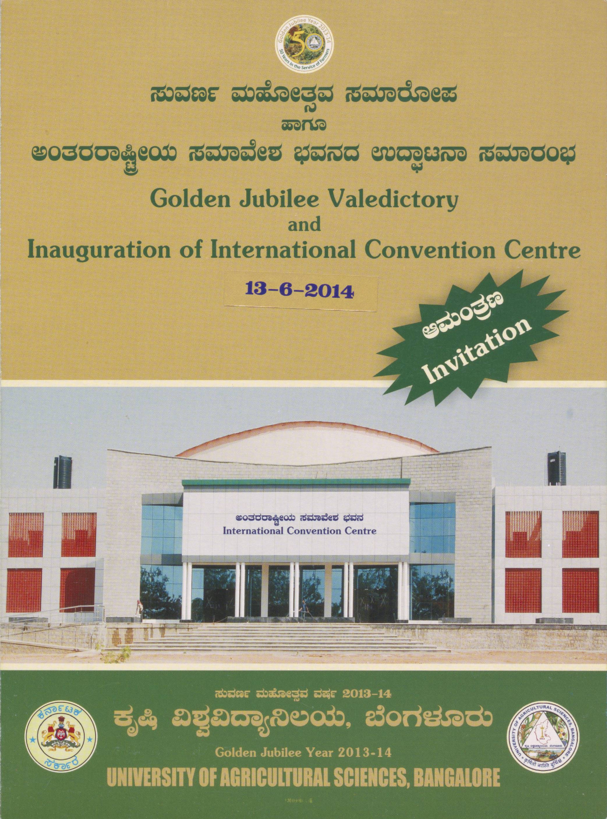 Material from the Golden Jubilee Valedictory & Inauguration of International Convention Center- University of Agricultural Sciences, 13 June 2014